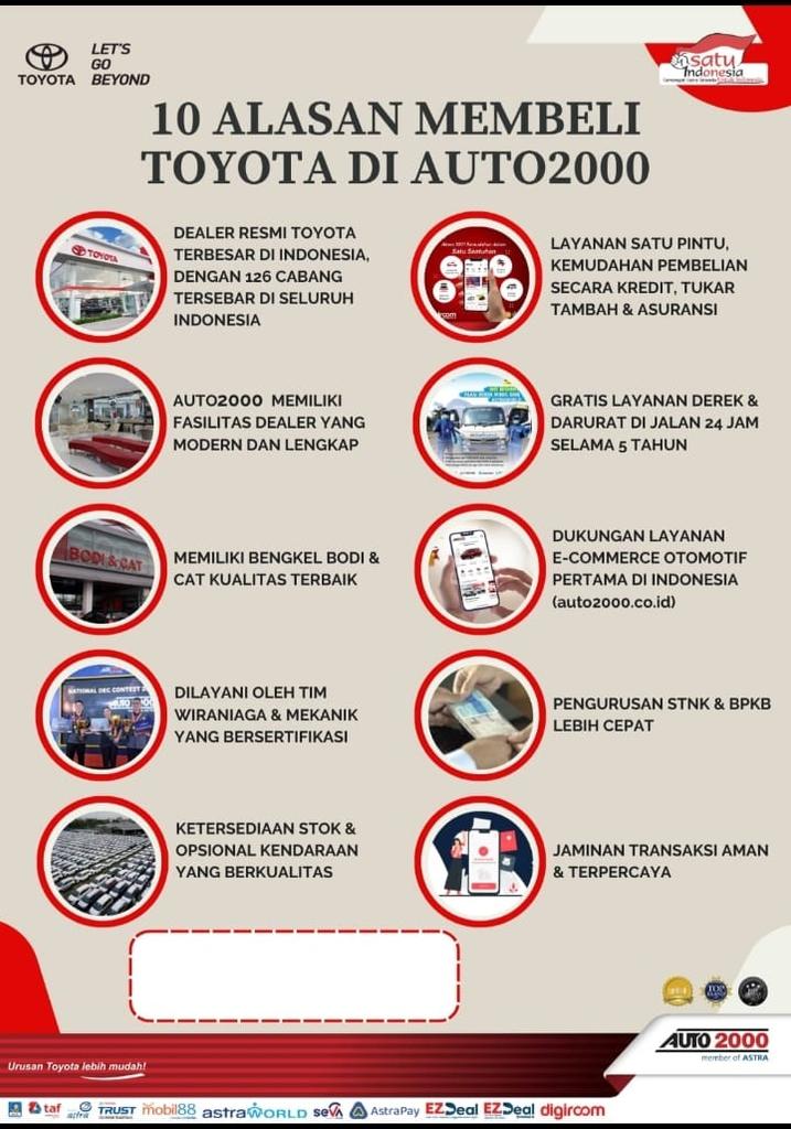 Dapatkan juga penawaran paket DP Angsuran Toyota super hemat & bonus super lengkap minggu ini. Bunga 0% dan Free Asuransi 1 Tahun
